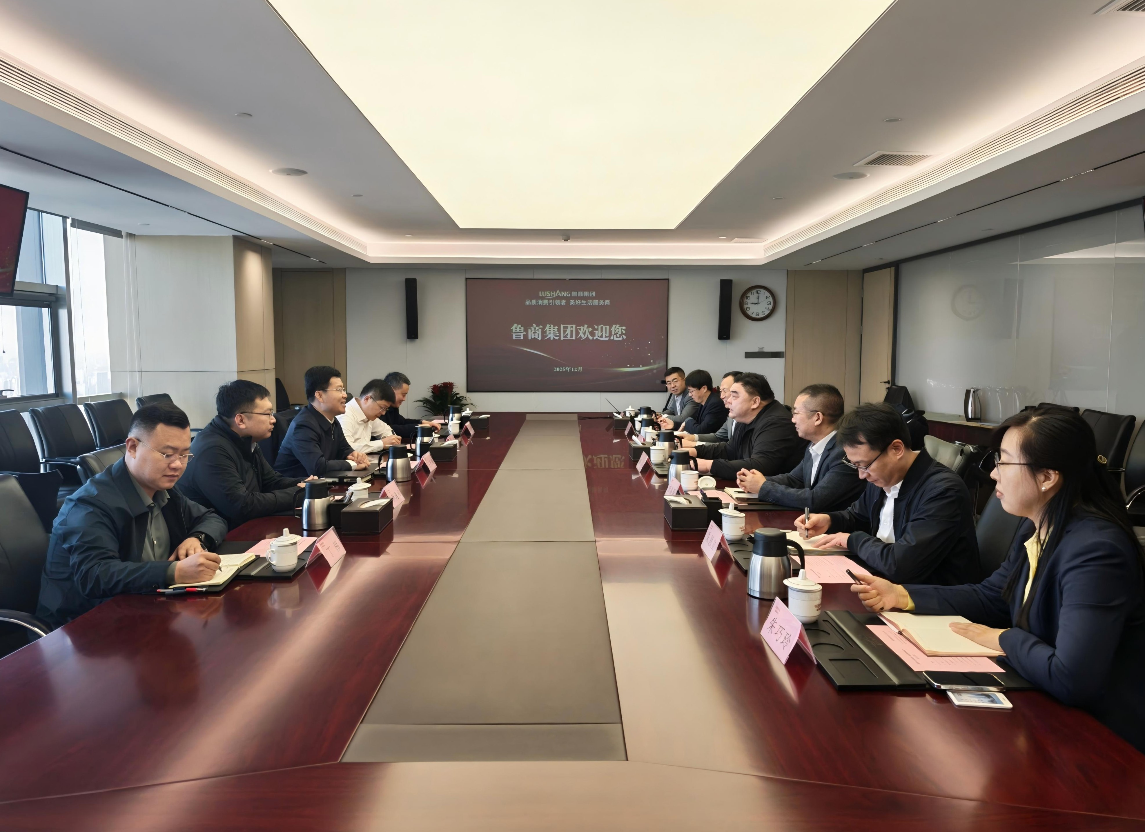 12月1日,煙臺市蓬萊區委副書記、區長王長港一行到訪魯商集團,集團黨委常委、副總經理劉巖熱情接待并舉行座談。