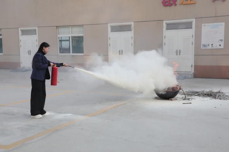 演練結束進行滅火器使用培訓,各部門人員輪流操作,掌握滅火器的使用方法。
